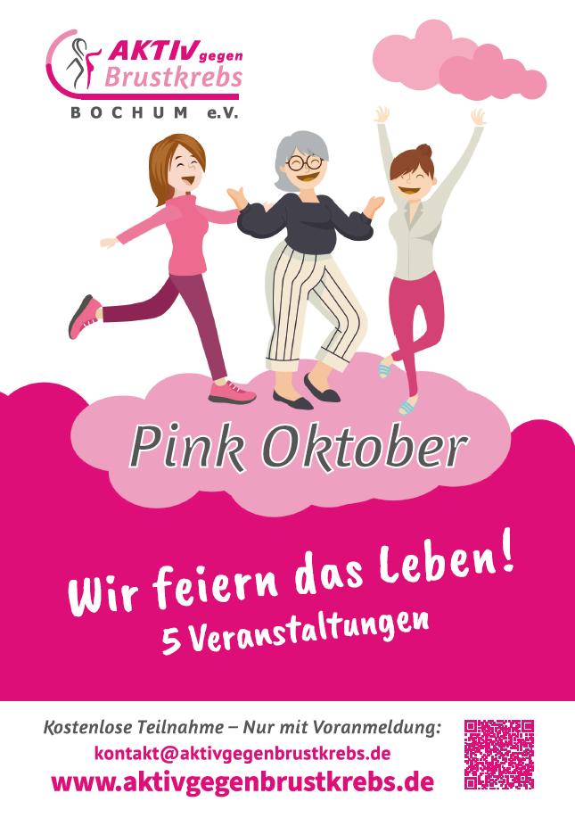 15. Oktober 2025Im Oktober steht Bochum wieder im Zeichen des Brustkrebsmonats. Der Verein Aktiv gegen Brustkrebs Bochum e. V. lädt Patientinnen und Interessierte zu besonderen Aktionen ein, die Mut machen und Gemeinschaft stärken.